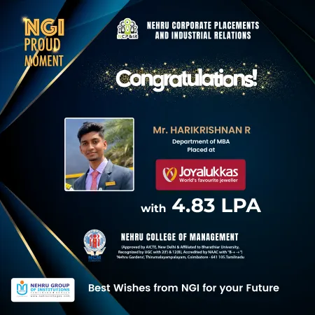 At the threshold of Golden jubilee, Nehru Group of Educational & Charitable Trust with the primary objective of rendering selfless, dedicated yeomen service to the cause of higher education.